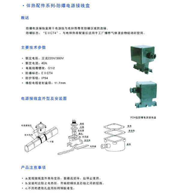 • 產(chǎn)品名稱:伴熱配件系列—防爆電源接線盒